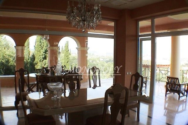 Corfu, just 8km. from the city and the airport, on the lush hill above Gouvia, with panoramic views of the sea, is the imposing 4-story luxury residence of 630sqm, constructed in 2000, in very good condition.