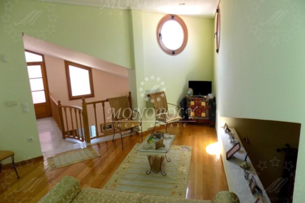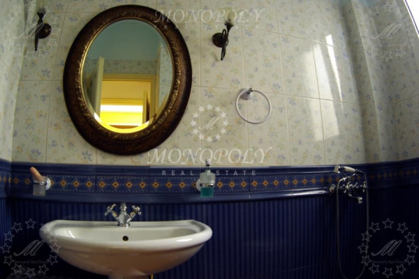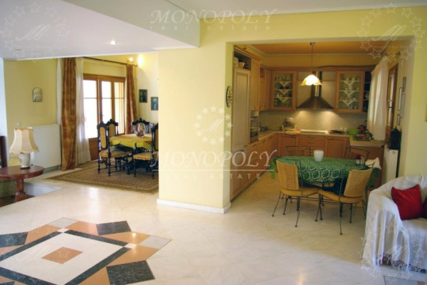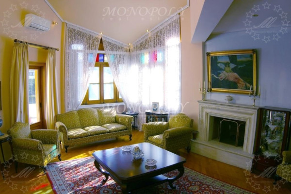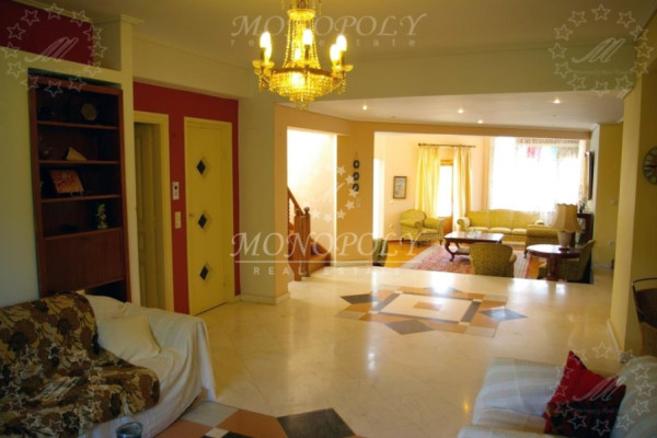Glyfada - Ano, Detached house 385sqm, on a plot of 450sqm, ground floor and 1st floor, with basement, a luxurious construction of 1990, with energy class: D, renovated in 2004. The ground floor (164,5sqm) consists of a large living room with fireplace, dining area with veranda, sitting area, open plan kitchen, 1 bedroom & 1 bathroom. The kitchen and the bedroom have a common veranda facing the backyard. The first floor (109,5 sqm) has a small living room, a veranda facing the ground floor lounge, 1 bathroom and 2 large bedrooms with many wardrobes. One has a balcony with awnings facing the backyard. The semi basement, which on the same level with the rear garden, (167 sqm) has a hall, a large playroom of 93sqm. with 1 bathroom, 1 large storage room, 1 closed garage and direct access to the large garden on the back of the property. All wooden floors are from oak and some other are from marble, the windows and doors are oak, it has security windows, screens, alarm, entrance camera, has internal elevator on all levels and autonomous heating on each floor separately. It also has a solar boiler, air conditioning, fireplace, awnings, it is very bright with terraces, with a beautifully decorated garden in front. In the back garden are trees and enough free space to build a swimming pool, as well as a room of 215sqm for complementary constructions (BBQ, hostel-studio, etc.). In addition to the closed garage, another 1 or 2 cars can park. It is a very remarkable property with unique architecture, for buyers with special requirements and taste and it is definitely worth seeing it in person. It is located in a quiet street but also close to a main avenue and local market.