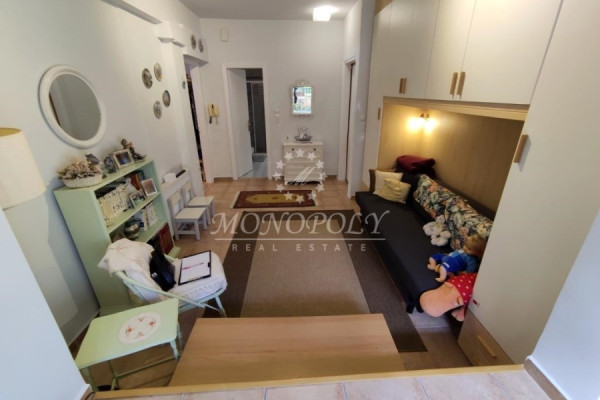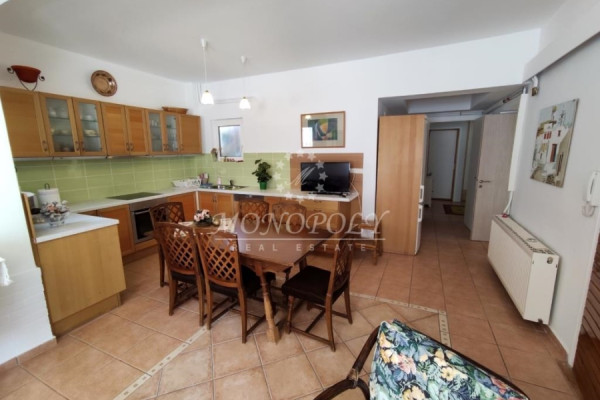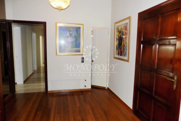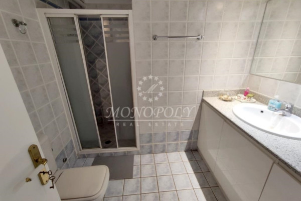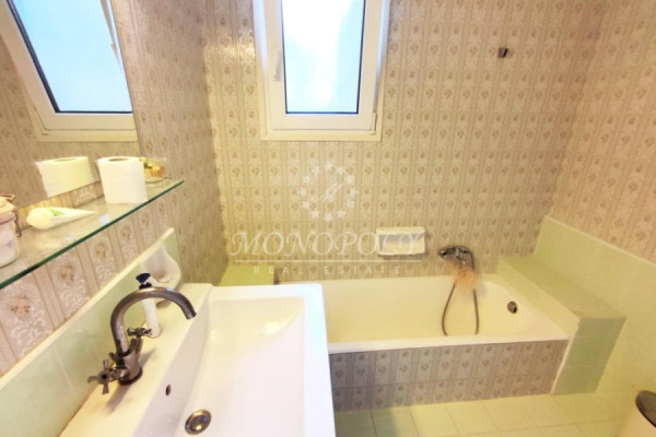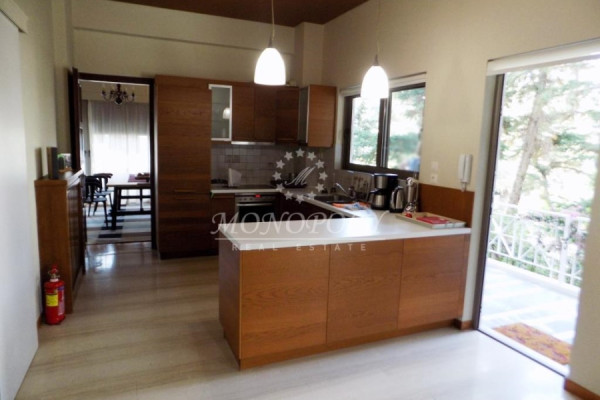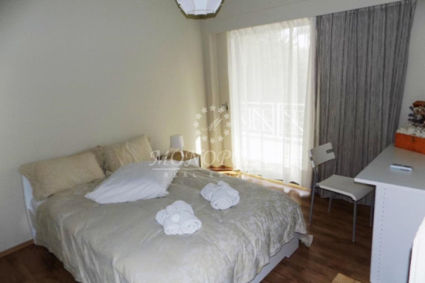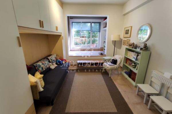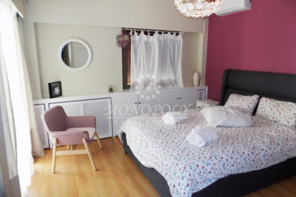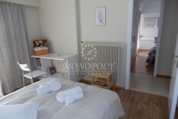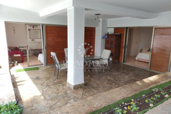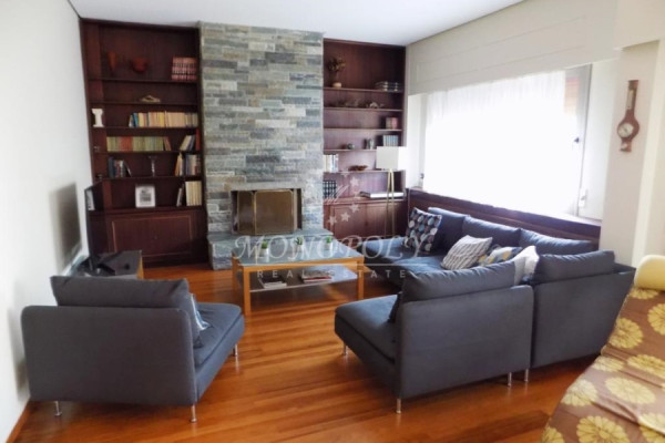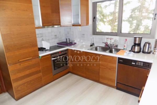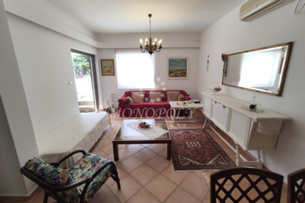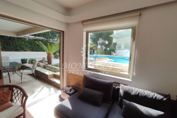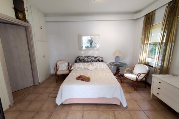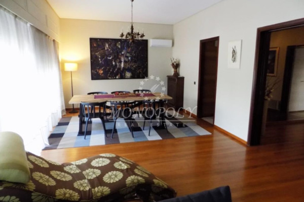 Voula - Dikigorika, Maisonette (Independent) 260sqm., with private use of the garden and swimming pool. It is a junction of 2 apartments of 100 and 120sqm. The top floor apartment of 120sqm. on the elevated ground floor is renovated in 2010, in excellent condition. It consists of living room and dining area with fireplace, separate kitchen, 3 large bedrooms with lots of storage space, 1 bathroom, 1 WC and big balconies. It has wooden floors and double glazed windows with screens. The floor-apartment 100sqm., below, is at the level of the garden with view and direct access to the swimming pool. It has living-room with an open plan kitchen with electric appliances, 2 bathrooms (one with shower, the other with bathtub) and 2 bedrooms with closets and glass-doors. It has air-conditions, solar water system, central petrol heating with the apartment above, double glazed windows, interior storage space and 1 parking place. Constructed in 1989, energy class D. It is located in a quiet area, close to Vouliagmenis Avenue, about 1km. from the shopping center of Voula and 1.300m. from the seaside with a nice beach.