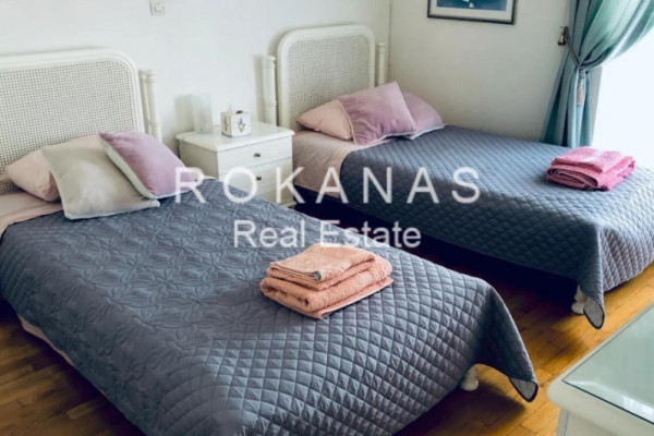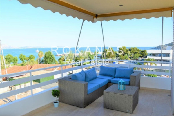 For Rent Apartment, Vari-Varkiza, Varkiza, 74 sq.m., 4th Floor, 2 Bedrooms, 1 Bathrooms, 1 Κitchen/s, 1 Fireplace, Floors: Wooden floors + Marble, Frames: Aluminum, 1 parking, Building Year: 1998, Certificate Energy: B+, Feautures: Elevator, Security door, CCTV, Fireplace, Internal Staircase, Double Glazed Windows, Balconies, Furnished, Penthouse, Airy, Roadside, Bright, AirConditioning, Solar water system, Back yard (Garden), Renovated, Autonomous - Petrol Heating, View: Sea view, Price: 1.350€