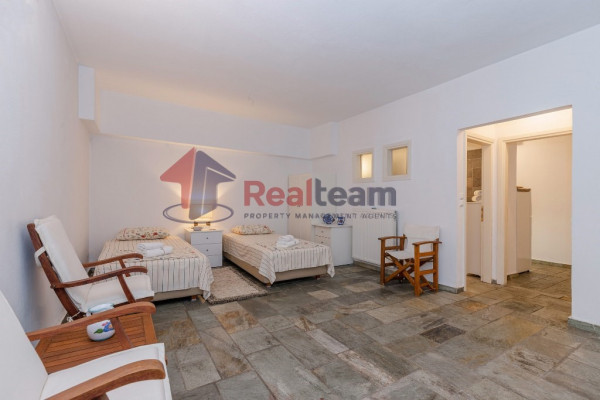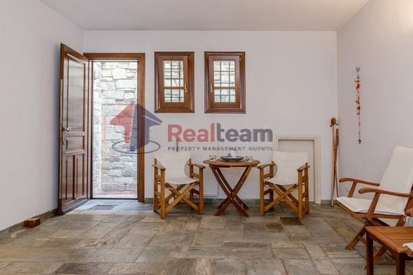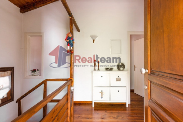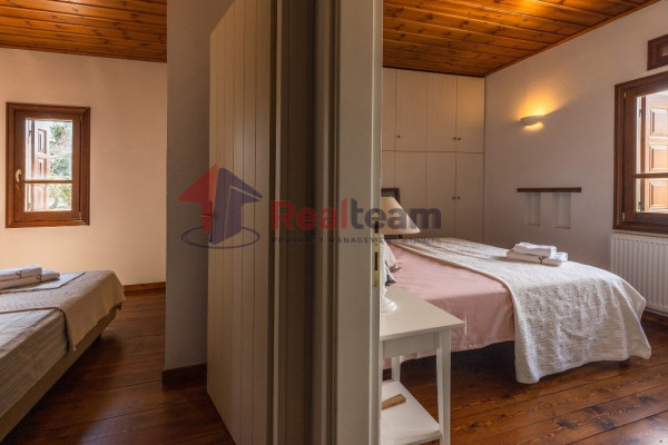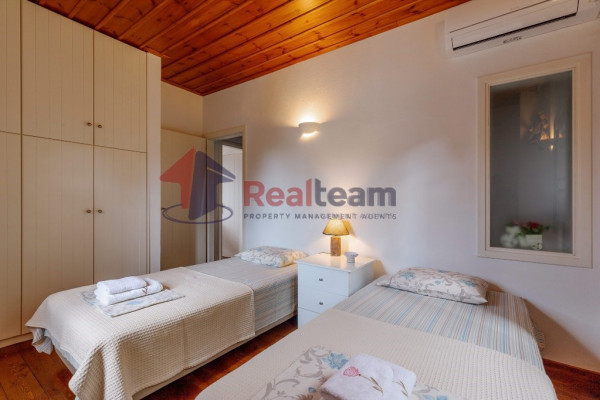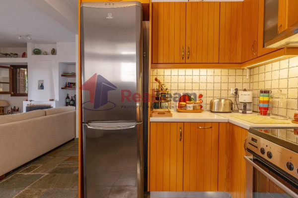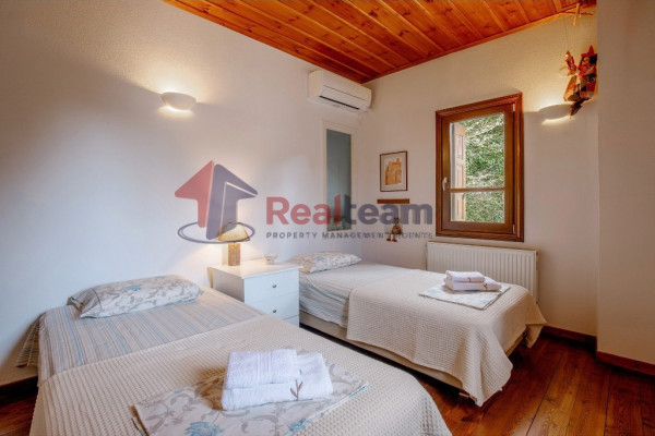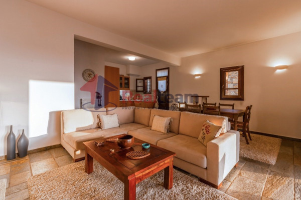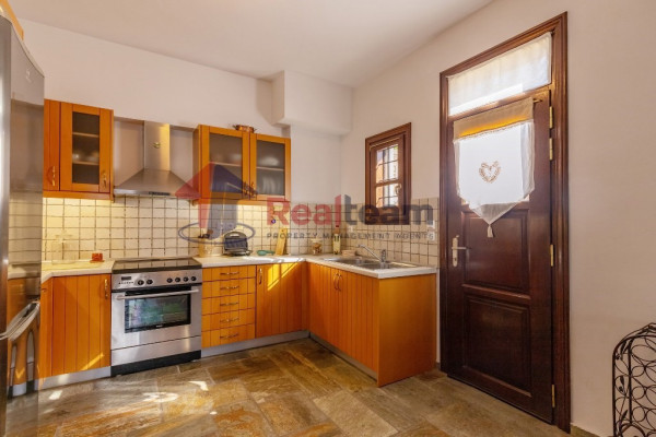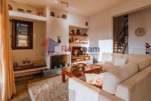 The property consists of three levels. On the first floor of 51.41 sq. m we find two spacious and bright bedrooms and a bathroom. Then, with an internal staircase, we go down to the ground floor of 51.41 sq.m., where we find a single living room, dining room with fireplace, the kitchen, and a WC. Outside the living room there is a spacious terrace with unlimited views. Then we go down the external stairs and there is another apartment of 51.41 sq. m where there is a bedroom, a bathroom, the kitchen and the boiler room of the property.