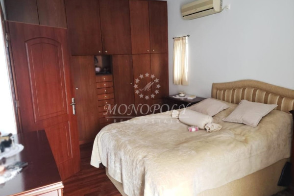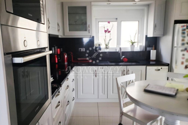 Glyfada - Terpsithea, luxurious floor-apartment 110sqm., 4th floor, built in 1997, in excellent condition. It has a bright living room with wooden floors and fireplace, dining area, separate kitchen next to it, with white cupboards, electric appliances and common balcony, with BBQ and awnings. From the hallway we go to the WC, the bathroom and 2 bedrooms with wooden floors, lots of closets and balconies. There is autonomous - petrol heating, air-conditioning, solar water system, double glazed windows with mosquito screens, security door, CCTV, elevator, storage room, 1 parking and sea view.
