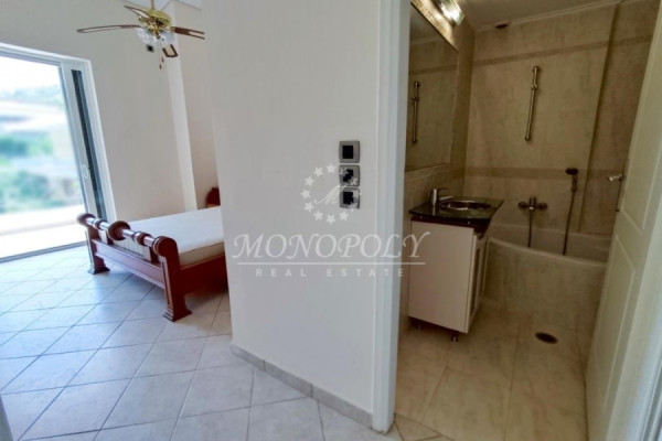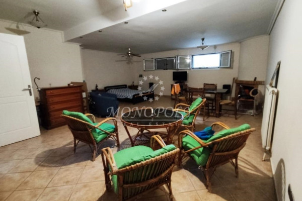 Saronida - Sector A, Maisonette (Detached), 242 sq.m., frontage, bright, airy, ground floor - 1st, playroom, built in 2001, in excellent condition. It consists of an elevated ground floor with a living room with a fireplace, tiled floor, open plan kitchen with a dining area, Landry - pantry, 1 WC, from the 1st floor with 3 bedrooms (1 master with its own bathroom), a total of 2 bathrooms & an independent semi-basement apartment with its own living room with fireplace, open plan kitchen, 1 large bedroom, 1 bathroom, with internal and external entrance for independent use. It has independent heating, double glazed windows, security door, screens, aluminum frames, 2 fireplaces, solar water system, storage, 1 parking place, terraces. It is located near the market, transportation in a quiet location, just 700 meters from the beach.
