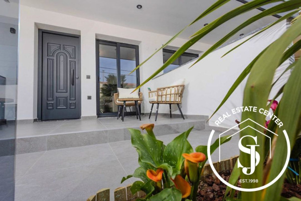 The three-level house is located on a hill surrounded by beautiful nature. The house has an area of 300 sq.m., surrounded by a large landscaped garden of 4000 sq.m. with many flowers, palms, flower beds and olive trees. There is a barbecue on the plot. The house is located 600 m from the sandy beach. The large terrace offers excellent sea views.
