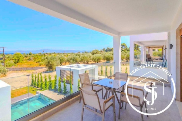 It is offered for sale a cottage on three levels with an area of 200 sq. m. in an elite tour town on the Kassandra Peninsula. The windows, terraces and balconies of the cottage offer an impressive panoramic view of the sea. The cottage has a living room combined with a kitchen, 3 bedrooms Additionally: warehouse space The cottage is sold fully furnished. Own plot of 1100 m. Distance to the sandy beach 350 m. Distance from the airport 88 km.