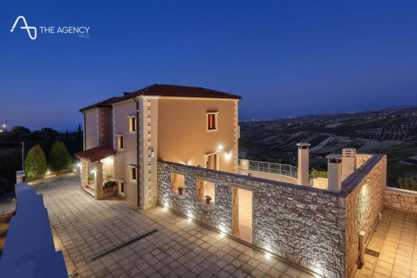 Heraklion, Lygaria area, Theseas settlement. Luxury Villa of 332 sqm for sale in the settlement of Thesea. It consists of 3 levels. The first level has an area of 158 sq.m. It consists of a large bedroom suite with its own bathroom, a double bedroom, a kitchen, a living room with a dining area, a bathroom, a storage room and a laundry room. From this level there is access to the terrace, where the 30m2 swimming pool is located, with an unlimited view of the sea. The second level has an area of 157 sq.m. It consists of the fully equipped kitchen, the large living room with the dining room and the fireplace, as well as a wc. The third level is 102 sq.m. It has a large bedroom-suite with its own bathroom and balcony, overlooking the sea. In addition two more bedrooms. One double and the other single, with their own balcony and unlimited view. Also a shared bathroom. From this level there is access to the covered garage of 20 sqm.