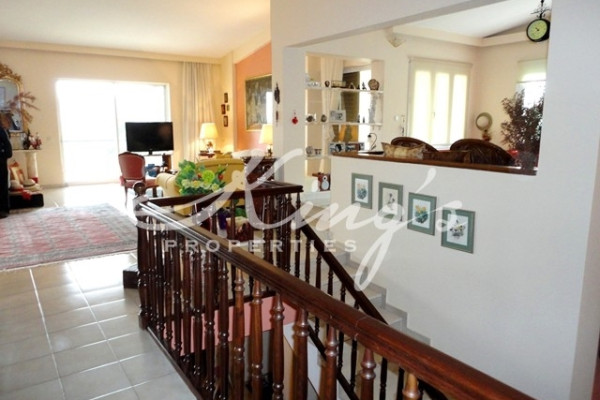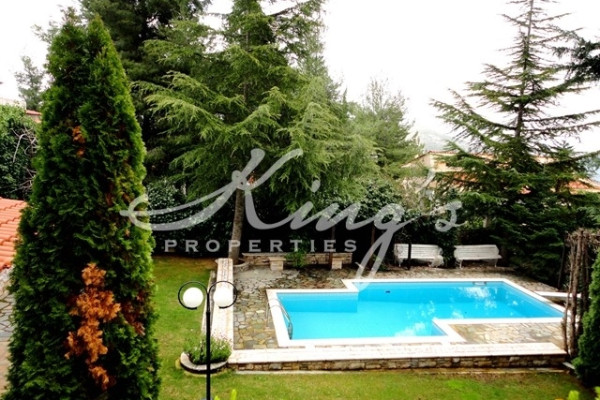 DIONISOS, for sale, detached house 348sqm, with swimming pool and beautifully landscaped garden with bbq, in a plot of 800sqm, on the ground floor reception area, office space, bathroom with shower, on the 1st floor large living room opens onto a spacious balcony, seating area with fireplace, auxiliary storage space, dining room, open kitchen with breakfast bar and daily dining area. On the playroom, ground floor, reception area, 4 bedrooms ( one of which master with ensuite bathroom with bathtub ) all with balcony, plus 1 bathroom with bathtub, several closets, boiler room, storage. At the level of the garden and swimming pool there is an independent apartment of 60sqm, laminate flooring, open kitchen, seating area, 1 bathroom with shower. Underfloor heating, boiler, alarm system, double glazed windows, large terraces, overlooking lush greenery, tents, 3 parking spaces, KING`S PROPERTIES - www.kingsproperties.gr - tel: +30210 8014300