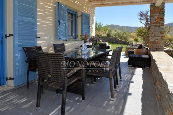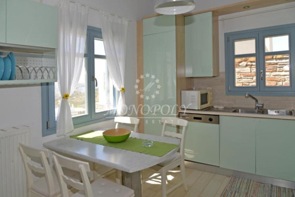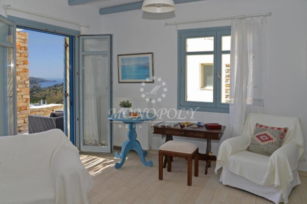 Kea (Tzia) - Otzias, 600m. from the beach, is a Detached house 130sqm., constructed in 2005, on a 1.000sqm. plot, with baclony and wonderful sea view, and garden with BBQ. It has a 65sqm. ground floor with living-room, dinning area, kitchen, 1 WC with shower and balcony with sea view! On the level below, of 65sqm. are 3 bedrooms (2 master with bathrooms) and 1 third bathroom. There is a private paring space for at least 3 cars. It has great view and is a large cozy house for at least 4 persons. It has big rooms, lots of bathroos and is located at a quiet spot, with taverns at a distance of 500m. up to 1,700m. and a short distance from nearby beaches, such as Otzias at 650m, Gialiskari at 2.1 km and Kastriani at 5 km. Ideal for summer vacations and as an income, if you rent it for short term in the summer.