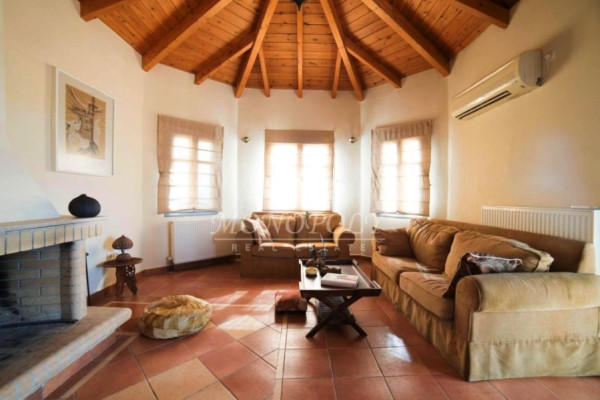 A noteworthy investment property in a high-interest area with a view of Nafplio & Palamidi. It has full privacy since it is situated in five acres of land. The villa is made of stone and unfolds over three levels: an elevated ground floor consisting of a large living room with an energy-efficient fireplace, an open-plan kitchen, a spacious bedroom, and a bathroom, the first floor comprises two bedrooms, a sitting area with a balcony, and a bathroom with a shower lastly, there is a bright semi-basement that can be utilized as a playroom/storage. The ground floor is connected to the first floor with an internal staircase. The ground floor and the first floor have a visually connected courtyard. The house has an unobstructed view with balconies surrounding the residence. It also features a solar water heater, a security door, double-glazed aluminum windows with screens, an alarm system, and underground parking. The house was built in 2013 and is in excellent condition. The property is strategically located near hotels and other residences available for lease through long-term rentals. The detached house is only a 7-minute drive from the center of Nafplio and the beach & and an hour and a half from El. Venizelos airport, as well only 30' drive from the ancient theatre of Epidauros.