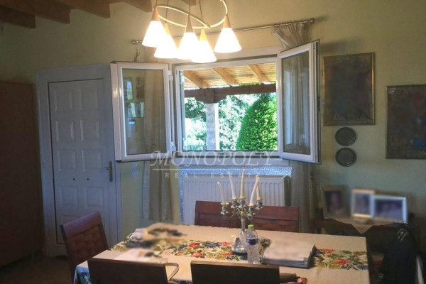 The garden has 200 manicured plants - trees - shrubs and an additional 11 fruit trees. The garden preceded the construction of the building (2001). There is night lighting throughout the garden and the walkways are paved with cobblestones and natural stone. There are 3 covered timber warehouses with a capacity of approximately 2 tons. Gravel has been laid throughout the garden to retain moisture in the summer months. It also has 2 flower beds with lawn and open parking shaded by 3 ivy trees. All are irrigated by an automatic system with a computer and electrovalves with a separate water supply and drippers on all the plants. (lawn sprinklers). The power supply is underground and the current is three-phase. There is full alarm with traps and motion sensors. The house has a central water filter and a magnesium mechanism for desalination. There is a 4.95 KW photovoltaic system installed, and interconnected with the electricity company, which yields approximately 350 euros monthly tax-free income with a 25-year contract with a projected outstanding income of 50,000 euros.