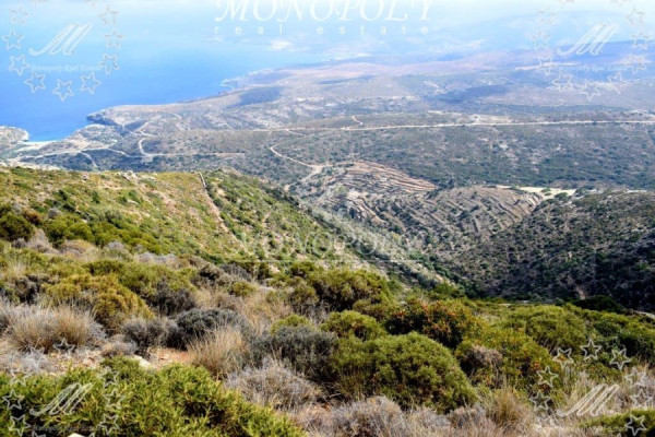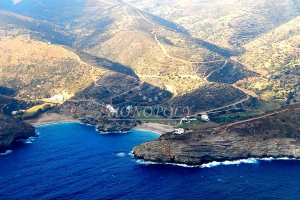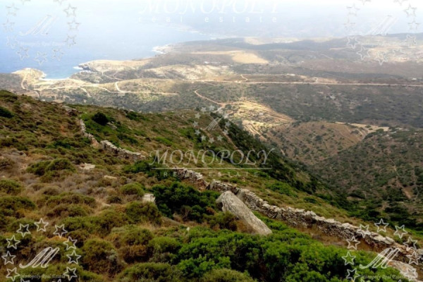 Andros, Plot 36.250sqm, outside city plans, with able to build on the 16.860sqm. about a 328 sq.m. villa. or 10 houses of 150 sq.m. per 4 acres, total 1.500 sq.m. or a 1,500 sq.m. hotel. It is located at the area Vitali, Agios Simeon, 13km. away from Gavrio, close to Nataoura, 14km. from the port of Andros. The southern side is amphitheatrical like an ancient theater, and is flat at the top section. It is 1,5km. away from the beach, 360m. above it. It has on a central road with asphalt at 2km.