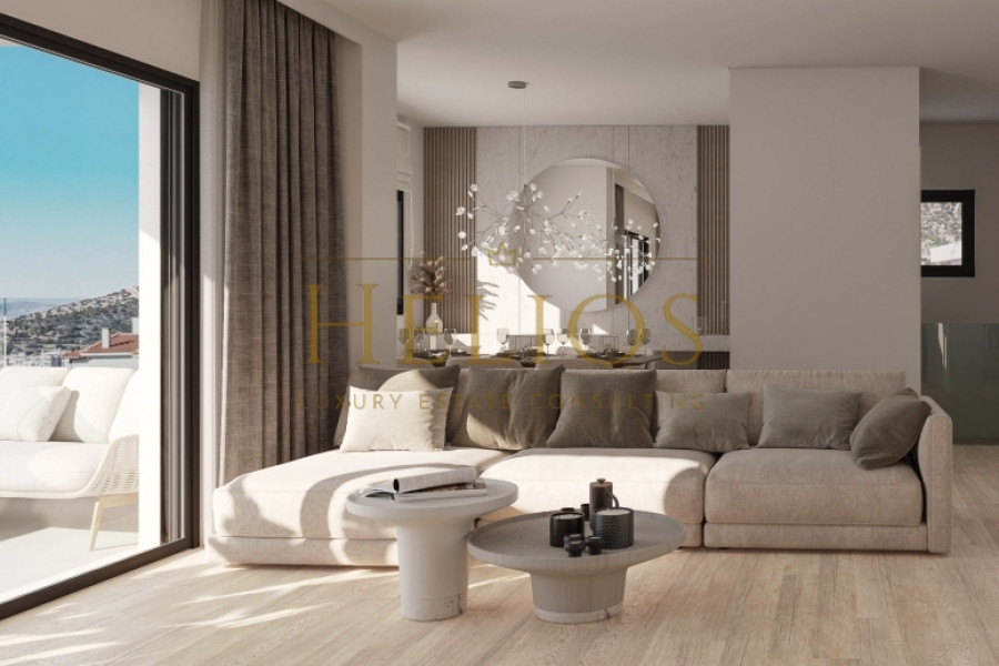 For Sale Floor Apartment, Voula, Pigadakia, 110 sq.m., In plot 700 sq.m., 2nd Floor, 2 Bedrooms, 1 Bathrooms, 1 WC, 1 Κitchen/s, Floors: Tiles, Frames: Aluminum, 1 parking, Building Year: 2022, Certificate Energy: B+, Feautures: Elevator, Security door, Storage room, Night stream, Double Glazed Windows, Window Screens, Balconies, Airy, Roadside, Bright, Underfloor, AirConditioning, Solar water system, Swimming pool, New Construction, Out of doors: 69 sq.m., Autonomous - Heat Pump Heating, View: Mountain View + Sea view, Price: 580.000€
