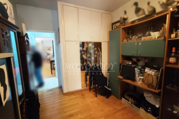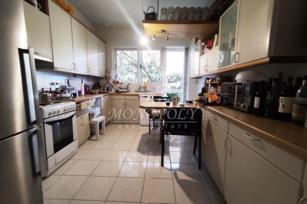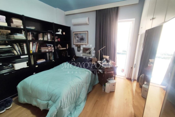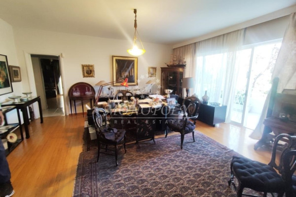 Glyfada - Center, Apartment 140sqm., 1st floor, construction of 1993, large living-room with with fireplace, open dining area, separate large kitchen, 3 bedrooms, 1 bathroom and 1 WC. There are wooden floors everywhere, independent own-gas heating, security alarm, elevator, double glazed windows, wide balconies with awnings, on front and on the side, 12sqm. storage room in the basement, 1 parking place with space for a second car behind it. Very central, walking distance to the shops, cafe, restaurants, bus and tram stops, the beach and marinas.