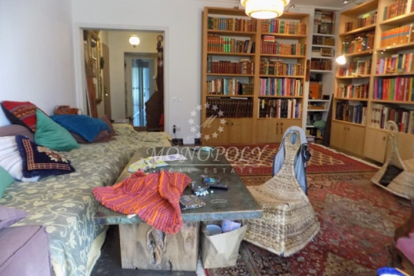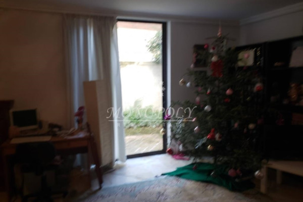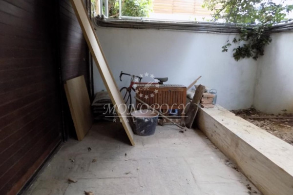 On the 1st floor is a 90sqm. apartment with a living-room with black marbles, large hallway, separate kitchen, 2 bedrooms about 9sqm and 12sqm. each. 1 bathroom with storage space above, 1 WC with a window and large balconies front and back with garden view.