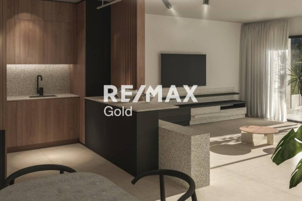 HIGH FLOOR: It consists of a very comfortable living-dining room, separate kitchen, 1 room, 1 bathroom, 1 WC. In the living-dining area there is a large balcony door that leads to the large central terrace and the garden. The kitchen has two balcony doors and also direct exit to the terrace and the garden. It has luxurious kitchen furniture. It also has space for a casual dining room. The room is comfortable with wardrobe, balcony door, terrace. The bathroom has a window and luxury toiletries. The WC is also luxurious.