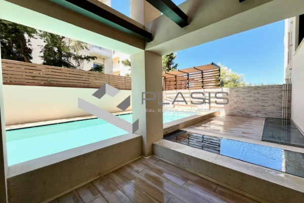 Glyfada - Golf, Apartment Maisonette 185sqm., 2nd-3rd floor, penthouse with sea view, a construction of 2010, living-room with fireplace, kitchen, sitting room, 4 bedrooms, 2 bathrooms, 1 WC, wooden floors everywhere, independent own-gas heating, boiler, air-conditioning, double glazed windows, electric shutters, security door, security alarm, CCTV, elevator, storage room, 2 parking places. It is located next to the old airport, next to bus stops, a local market, about 2 km. from the beach.