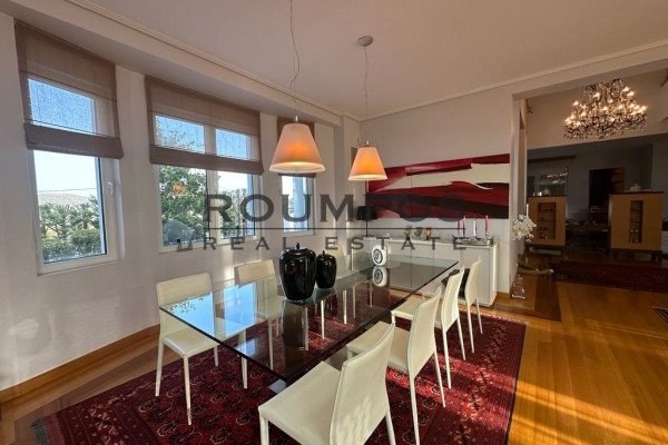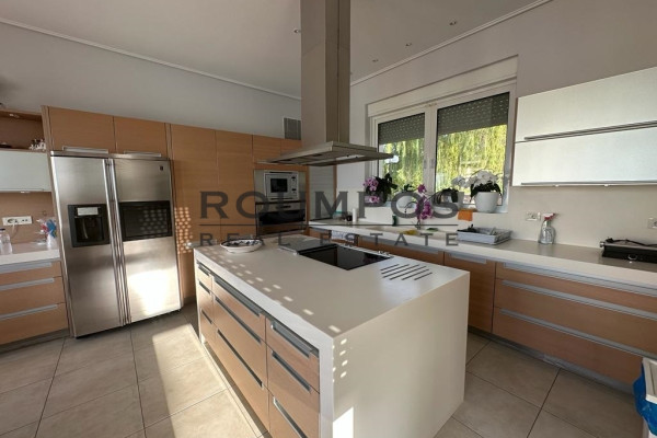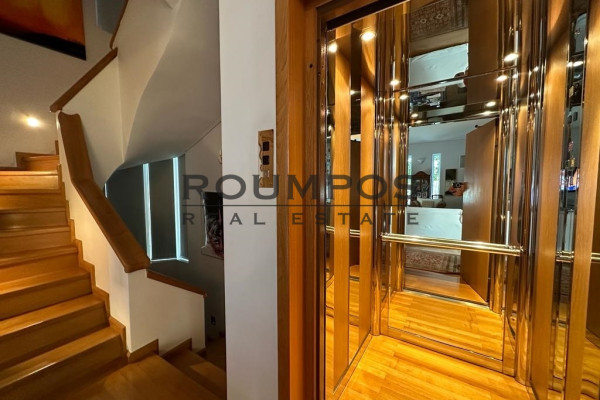 Features: pool size: 152 sqm with chlorine. Landed BBQ Garden Size: 5,000 with lawn and trees state -of -the -art alarm systems, fully equipped, with two sensor lines on the perimeter & 16 cameras, Smart Home. Installations: elevator, basketball court, football stadium, office space, gym, Laundry Room parking space: 3 indoors, 40 outdoor generator, drilling, watering. Heating: Autonomous, oil, air conditioning, fireplace is renovated every year entrance to the property is made through a private road (asphalt). DISTIES: Airport: 14km Sea: 5km of Kifissias Node (Attica Road): 25 km Roumpos Real Estate