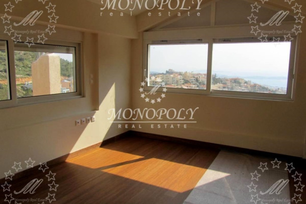 Voula, Central Panorama, brand new uninhabited maisonette penthouse 225sqm 3-4 floors, in excellent condition. It consists of a large living room, kitchen, 3 bedrooms (1 master), 2 bathrooms, 1 WC. It has autonomy with natural gas per level, fireplace, solar, air conditioning, double glazing, security doors, storage, garage 40m2 interior, elevator. Construction with excellent materials, neoclassical style & flexibility of internal aesthetic interventions. It has 160 square meters of terraces, with an unobstructed magnificent view of the sea & from the master bedroom.