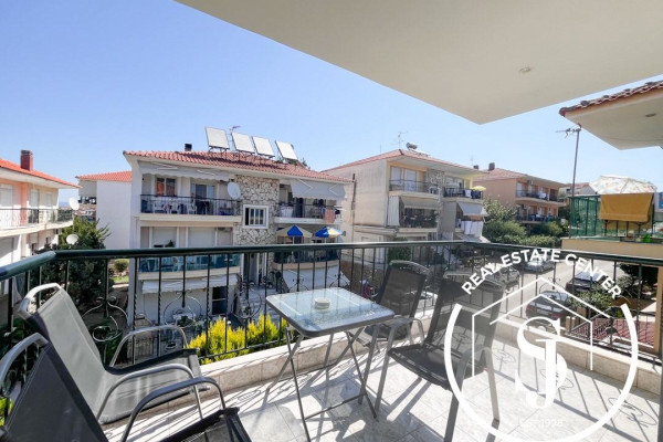 The apartment is located on the ground floor and consists of a spacious living room with open plan kitchen and access to a terrace of 18.52 m², 1 bedroom with a balcony of 8.98 m² and 1 large bathroom with a window.