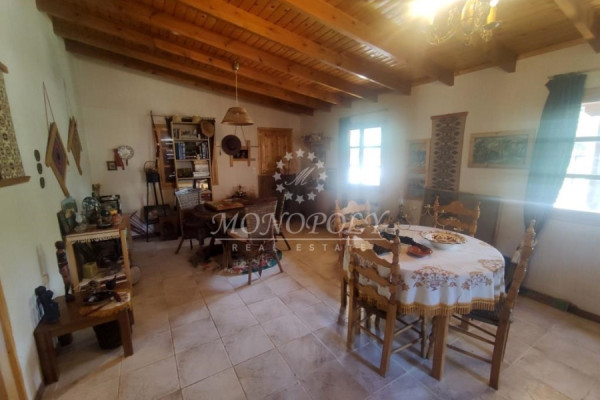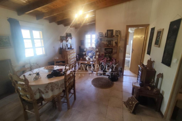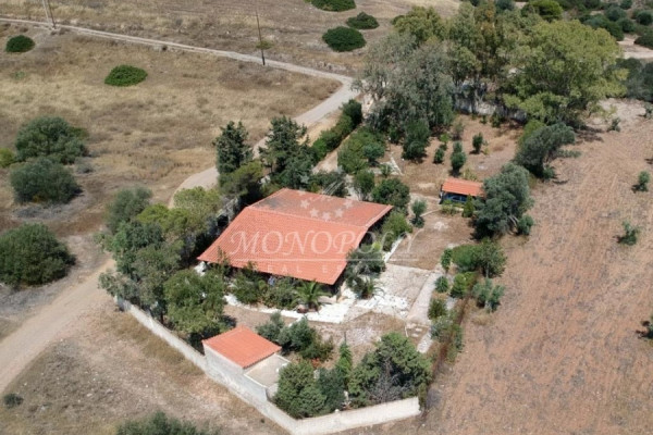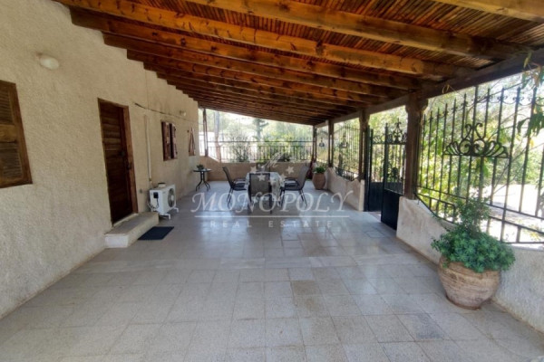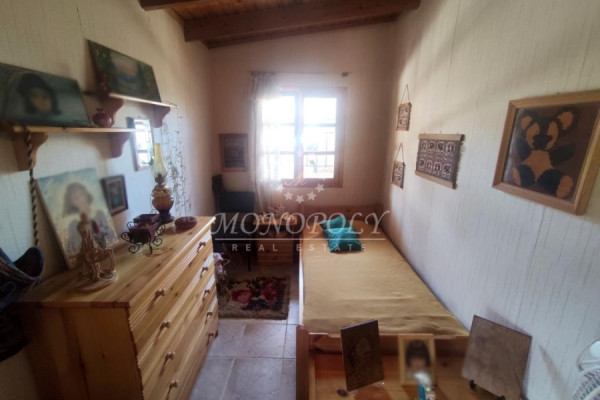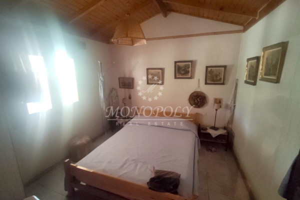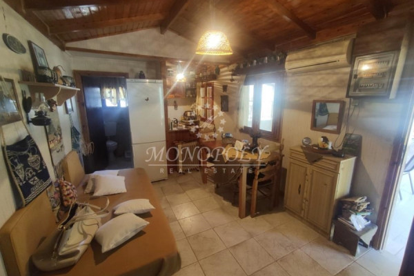 Lavreotiki - Legrena, Megala Pefka area, Detached house 68 sq.m., ground floor, built in 1986, detached, with 50 sq.m. yard & wooden pergola in front. The yard continues around the perimeter of the house with 1m. width. On a plot of 1,800 sq.m. approx., with 5 olive trees, other trees and plants, 1 covered parking space and a built storage on the rear. The house consists of a large bedroom with wardrobes and windows, and a second open bed area in the living room. Entering we find the dining room with an open, small kitchen, windows and a WC with shower. Further inside is the living room, with many side and rear facing windows, a second wooden entrance door, the bed area and 1 bathroom with bathtub and window. It is about 3km away. from the seaside with a nice beach, a restaurant and an intercity bus stop, next to the enchanting Sounio.