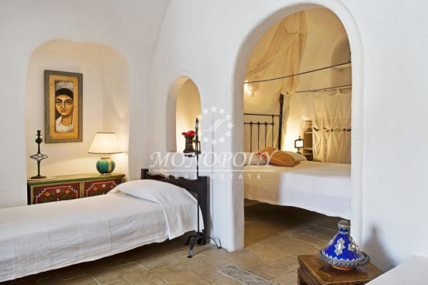 It is a complex of 6 fully restored cave houses, with 16 beds, located in a tranquil neighborhood which was once a medieval village of Santorini, a 15-minute walk from Oia. All units have been renovated with special care, according to the traditional architecture, and have luxurious furniture. They also provide modern amenities such as satellite TV and internet. In addition, all houses include a refrigerator, regular or kitchenette and a private terrace with sea views.