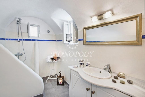 It is on 3 levels and it can operate 180 days a year. It is 2.3 km away. from the beach of Ormos Armenis, 1.6km. from Oia and is for sale with the furniture as it is.