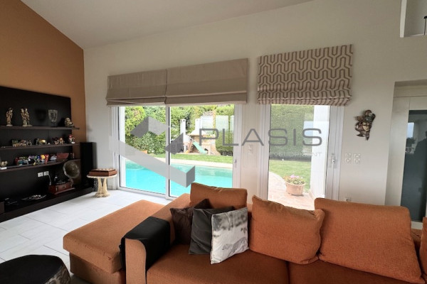Detached house For sale, floor: Semi-basement, Ground floor, 1st (3 Levels), in Rafina - Kalitexnoupoli. The Detached house is 350 sq.m. and it is located on a plot of 538 sq.m.. It consists of: 4 bedrooms (1 Master), 3 bathrooms, 1 wc, 2 kitchens, 2 living rooms and it also has 2 parkings (2 Closed). The property was built in 2005. Its heating is Personal with Heat pump, Underfloor heating, Heating per level, Air conditioning, Boiler, Sound insulation, Thermal insulation, Radiator are also available, it has Aluminum frames with Triple glazed windows, the energy certificate is: B and its floors are Tiles, Wooden. The property's status is: Excellent condition, it is close to Park, Sea, Square, Cafe/Restaurants, 6000 Km from seaside, 11000 Km from airport, it has Sea, Mountain, Nature, Openness, Panoramic, Unobstructed view and it has Southeast orientation. The Detached house is With Facade, Bright, Ramp / Wheelchair access, Detached, Lower level house, Luxury and it also has the following unique features and advantages: Window Screens, Elevator, Jacuzzi, Electric Appliances, Storage, Attic, Internal staircase, Swimming pool, Garden, Security door, CCTV, Security alarm, Internal elevator, Internet, Playroom, No shared expenses, BBQ, Satellite Receiver, Night stream, Three phase current, Automatic watering, Grass, Trees, Pets allowed, Quiet neighborhood, Porch, Smart home, Electric shutters, Gym, Septic tank. Price: €850,000. Plasis Real Estate Glyfada, contact phone: 2109601909, email: