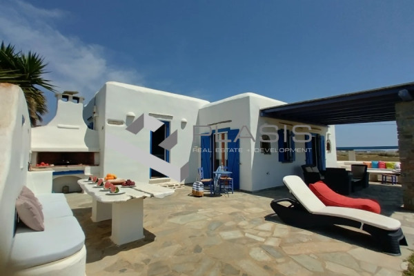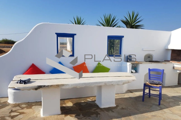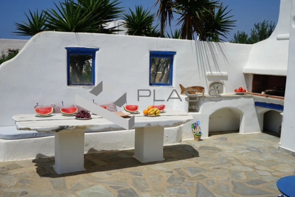 Paros, Kampos, Detached house For Sale, 120 sq.m., In Plot 6000 sq.m., Property Status: Very Good, Floor: Ground floor, 2 Level(s), 3 Bedrooms 1 Kitchen(s), 3 Bathroom(s), Heating: Autonomous - Petrol, View: Sea view, Building Year: 2004, Energy Certificate: D, 1 parking(s), Floor type: Tiles, Type of door frames: Wooden, Storage room, Fireplace, Cable TV, Electric Appliances, Double Glazed Windows, Window Screens, Balconies, BBQ, Pets Allowed, No shared expenses, For Investment, Furnished, Stonehouse, Luxury, Airy, Roadside, Bright, AirConditioning, Solar water system, Grass, Automatic Watering, Trees, Back yard (Garden), Painted, Distance from: Airport (m): 6000, Seaside (m): 120, City (m): 6000, Village (m): 1, Price: €730,000. Plasis Glyfada, Tel: +30 2109601909 +30 2109601609, email: