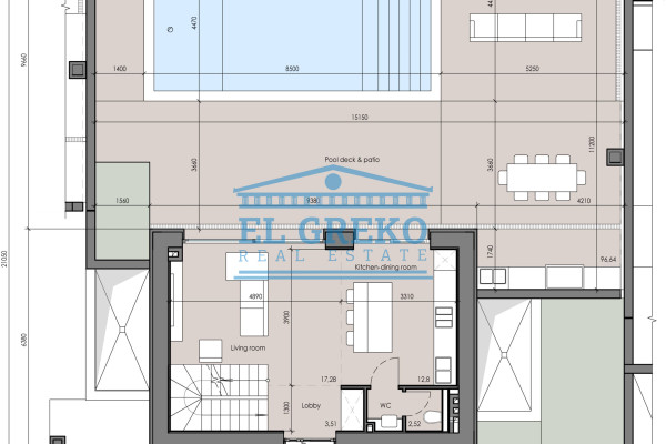 - patio with private pool of 28 m² with lighting and heating, BBQ area