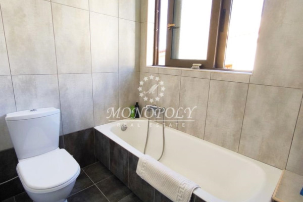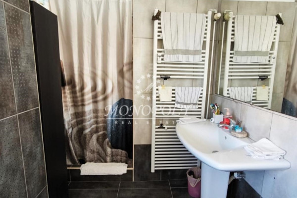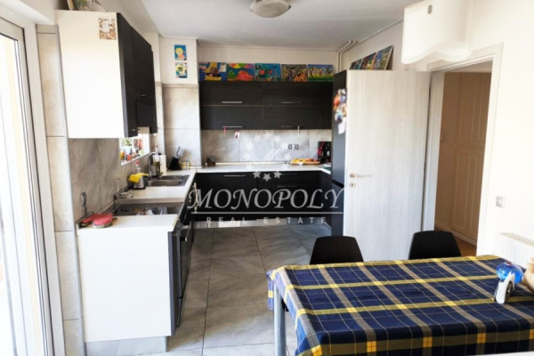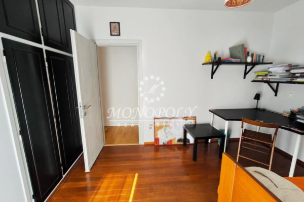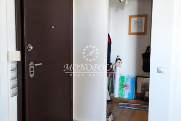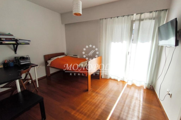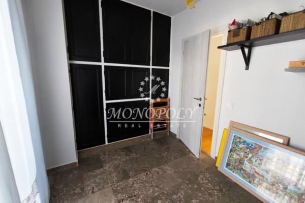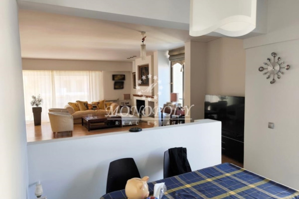 It consists of a large living room with fireplace & wooden floors with access to a wide south-facing terrace, renovated kitchen, large, open in a separate location with access to a balcony, with the possibility of closing, 4 bedrooms with wooden floors, 2 bathrooms, 1 WC, use of storage room on the ground floor & one closed garage space on the ground floor.