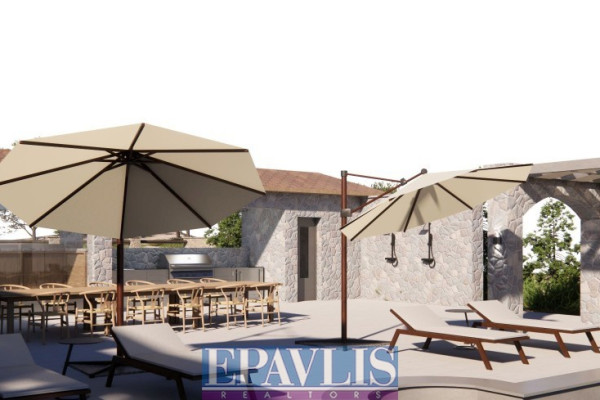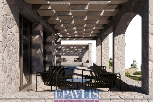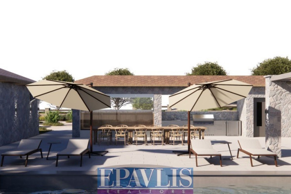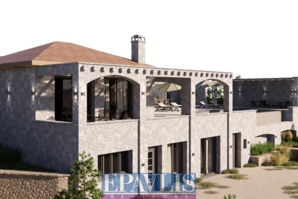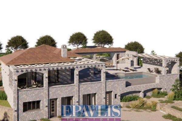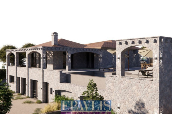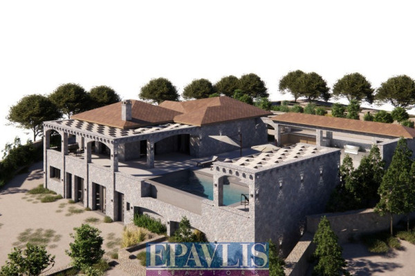 Ultra-luxurious stone-built villa of high standards, with a total area of 340 sq.m. on a plot of 2,130 sq.m. with a unique sea view. It is a newly built VIP residence, built on two levels. In particular: Ground floor with living room, fireplace, kitchen, three bedrooms, two bathrooms, semi-basement with living room, kitchen, two bedrooms, two bathrooms, outdoor outdoor kitchen with bbq, swimming pool with shower, room with bathroom, jacuzzi, wc, warehouse 60 sq.m. water heater, external terraces with unobstructed sea view, landscaped garden