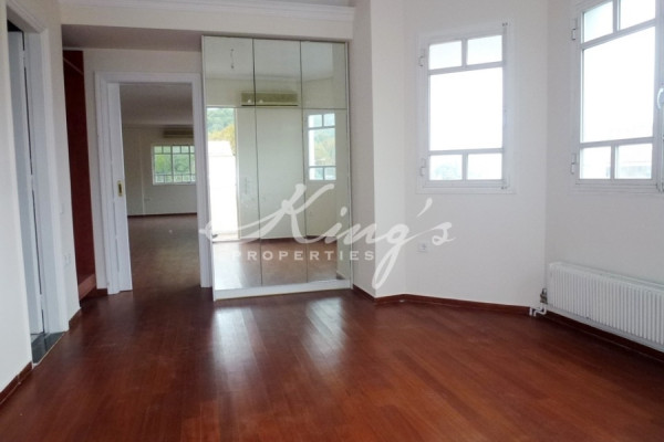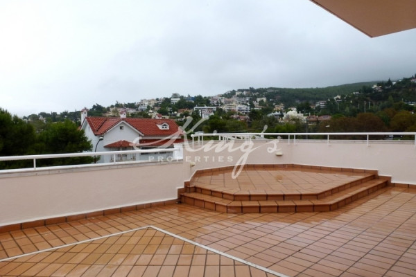 KIFISSIA- POLITIA, for sale, maisonette of 260sqm, with communal swimming pool, penthouse, 2 levels, on the 2nd floor large reception areas with fireplace, dining room, wooden flooring everywhere, large separate kitchen with daily seating area, 3 bedrooms (one of which master), jacuzzi, wc, very large terrace with view of the mountain, in the loft area two large spaces, tiles flooring, kitchenette, wc, access to roof garden 200sqm with bbq, kitchenette, bathroom and very nice view. There is an outdoor independent studio with bathroom and kitchenette. Autonomous heating system, boiler, air condition, alarm system, double glazed windows, elevator, storage 10sqm, parking for 3 cars (two of which in the basement), KING`S PROPERTIES - www.kingsproperties.gr - tel: +30210 8014300