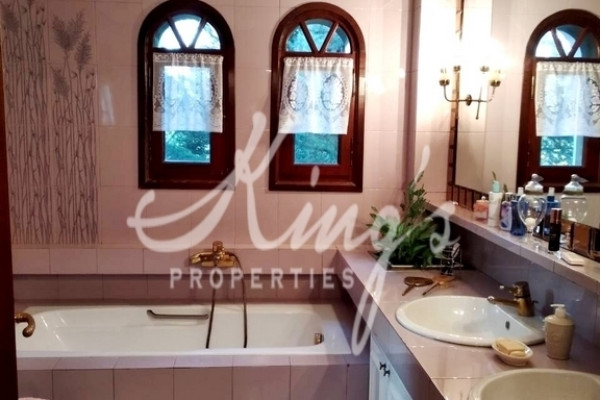 EKALI, for sale, excellent corner detached house of 850sqm, in a plot of 1.200sqm, beautifully landscaped surrounding area, large living room, dining room, 2 sitting areas, 3 marble fireplaces, large kitchen, office space, 6 bedrooms of which 2 master, plus 3 bathrooms and 2 wc, maid`s room with bathroom, large playroom in the attic, wooden flooring in all rooms, 3 wooden internal staircases, garage for 2 cars, gym, large storage spaces, price negotiable, KING`S PROPERTIES - www.kingsproperties.gr -