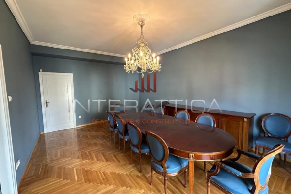 A 287 sqm apartment of a penthouse, which occupies the entire 4th floor of the building and is located on one of the most beautiful and expensive streets of Athens. It gains impressions with its classic elegance and its amazing large spaces, as it consists of a spacious entrance hall, 2 lounges, an official dining room, a living room, an independent kitchen communicating with Breakfast Room, 3 large bedrooms, 2 bathrooms. It is very bright, airy, facade, and its private terrace offers the view of Lycabettus and merges the tranquility of the green with the vibrancy of the view in the city. It has central gas heating, air conditioning, double glazing aluminum windows, alarm, high quality oak solid floors in all areas, except for the kitchen that has maintained the magnificent mosaic that existed before its renovation. Extending to the impressive range of 287 sq.m. And with the unparalleled sense of Athenian timeless elegance, it is in the heart of Athens, very close to the Concert Hall that is a reference point for the Athenians, as well as in the famous Mavili Square, which is one of the most vibrant and beloved squares in the city. Immediate advantage is direct access to the subway.