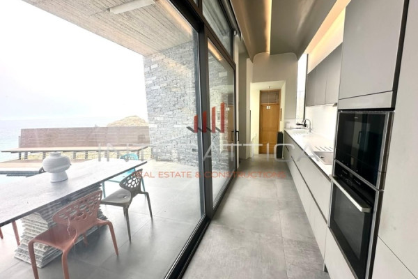 Minimal Design, Modern Aesthetics and Strortly Straight Lines Compose the Image of This Modern Stone House of 200 SQ.M. While the building located on a plot of 700 sq.m. DRAWS INSPIATION From the Rock Formations of the Outdoor Environment, Imparting a Sense of Freedom. The interior of the residence is Dominated by Simplicity, and the straight lines offer the Necessary Sense of Calm. Here the materials alternate in a harmonious way and all serve the original vision of minimalism and relaxation. The House is developed on two levels, one of which has all master bedrooms, each. The Second Level Includes A Spacious Living Room with a Fireplace and Impressive Large Openings, A Separate Kitchen with Equally Large Openings That Allow Light to Frely Diffuse Into The Space, Fully Equipped With Built-in Electrical Applians, and which has a covered terrace with a poolside dining area. On the same level is the guest wc, as well as a master bedroom with bagno en suite. The Characteristic Element of This Level is the Particularly Large Sliding Balcony Doors in the Living Room and Kitchen, which give the feeling of the integration of the interior with the exterior Environment and Enhance to the Maximum Extent, Both the Natural Lighting of the House and the Unparalled View Towards the Sea and the pool. It has autonomous heating with a Heat Pump, Air Conditioning in All Areas, Heavy-Duty Aluminum Energy Frames, Heat-Switchable, With Electric Roller Shutters and Blinds, Screens, Fire Safety System with Sensor, Alarm System with 8 External Cameras, Power Generator, Solar Water Heater, Security Doors, 2 Closed Positions Parking, Built-in Electrical Appliasses, Corian Kitchen Counter, Infinity Pool 35 sq.m. as well as direct access to a private beach. A Modern Detached House of Minimal Aesthetics that Combines Comfort with Simplicity and Modern Design with the Natural Landscape. A High Specification Building Designed with the Focus on Man and His Intection with Nature.