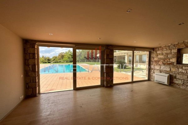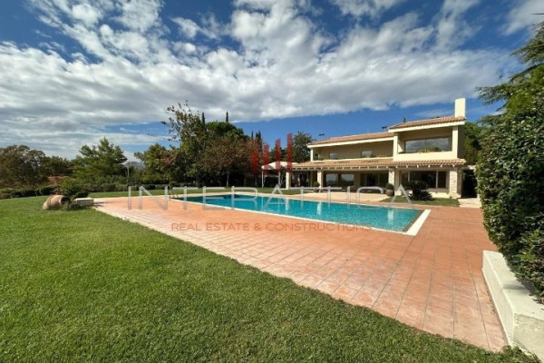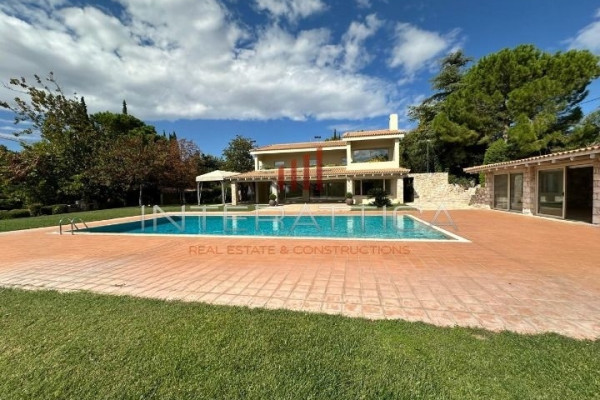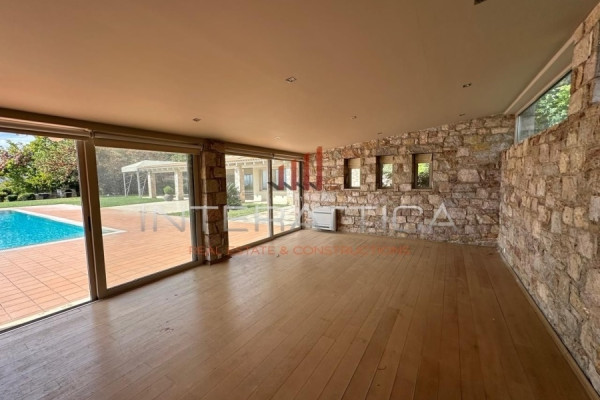 Excellent house of 780 sq.m. With a pool and garden, on a 5.5 -acre plot, consisting of three levels and includes 7 bedrooms, 2 of which are Master, 4 bathrooms, 2 WCs, a large living room with a fireplace, dining area, independent kitchen, playroom, gym, as well as independent barbeque, pool.