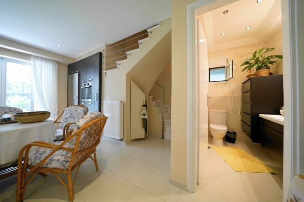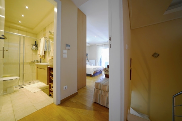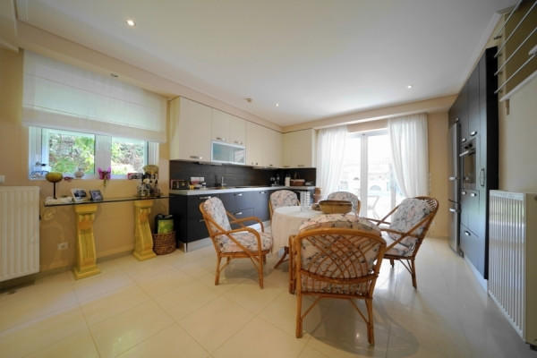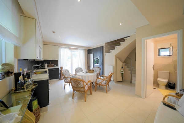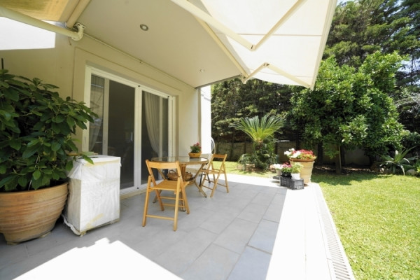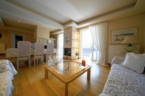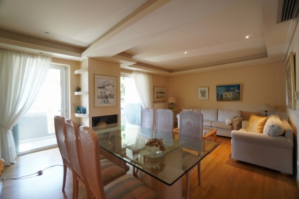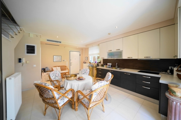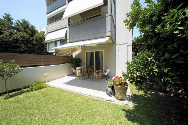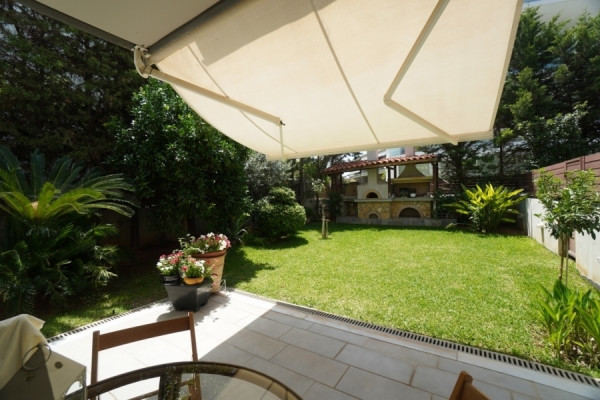 In the Athenian Riviera, In Glyfada, Center, there is a luxurious modern maisonette 145 sq.m. for sale, it’s on the ground floor and 1st floor, with an internal food elevator and high-quality materials. It has a great private garden 150 sq.m. with BBQ, The maisonette consists of 2 spacious bedrooms master, 2 bathrooms, w/c, kitchen with sitting room, living room with fireplace, central air conditioning system, satellite TV, electric hoover equipped, and automatic systems. It has a parking in the basement and a storage room. The location is great, within walking distance to the center of Glyfada.