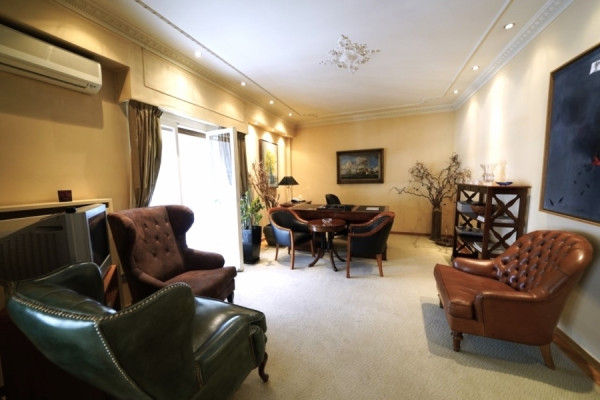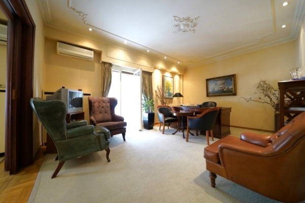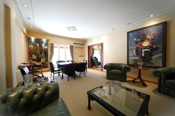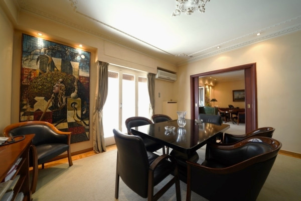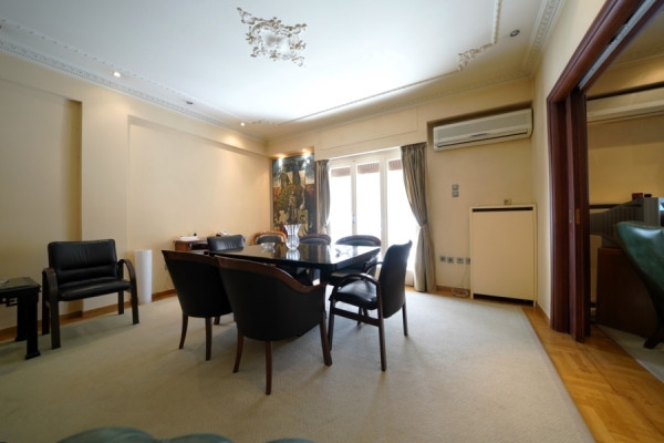 In the center of Athens, in Kolonaki, a spacious apartment of 140 sq.m. is available for sale, on the 3rd floor. It consists of an entrance hall, 2 bedrooms, a hallway, a bathroom, a w/c, an equipped kitchen, a living room, a dining room and a beautiful balcony overlooking the street in the heart of Kolonaki. It has wooden floors, aluminum frames with double glazed windows, awnings on the verandas, an elevator, a security door and an alarm system. The heating is central natural gas, while there are also air conditioners. It is a bright, front view, imposing apartment, with stately elements and luxurious materials, construction of 1962 and renovated recently. At that time, it is used as an office space, so it is also suitable for professional use. It is located in a particularly privileged location, in the center of Athens, in a safe and upgraded part of the area, with direct access to public transportation, 2` from the metro station of Panepistimio, 5` from the metro station of Syntagma – and Syntagma square, 9` from the National Garden, the Zappeion and the Benaki Museum, 10` from the Lycabettus hill, 5` from the Palia Vouli of Athens, in the huge market of the center of Athens and the various restaurants.