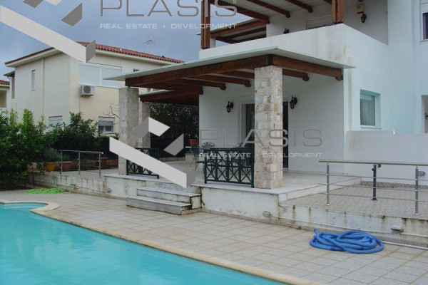Nea Makri, Kentro, Detached house For Rent, 200 sq.m., In Plot 300 sq.m., Property Status: Amazing, Floor: Ground floor, 2 Level(s), 3 Bedrooms 1 Kitchen(s), 2 Bathroom(s), Heating: Autonomous - Petrol, View: Unlimited, Building Year: 2003, Energy Certificate: C, 1 parking(s), Floor type: Wooden floors + Tiles, Type of door frames: Aluminum, Security door, Security alarm, CCTV, Storage room, Fireplace, Jacuzzi, Night stream, Internet Line, Electric Appliances, Internal Staircase, Double Glazed Windows, Window Screens, Balcony Cover, Balconies, BBQ, No shared expenses, Furnished, Luxury, Roadside, Bright, On Corner, AirConditioning, Solar water system, Boiler, Automatic Watering, Trees, Swimming pool, Back yard (Garden), Holiday Home, Distance from: Airport (m): 15000, Seaside (m): 200, Price: €6,000. Plasis Glyfada, Tel: +30 2109601909 +30 2109601609, email: