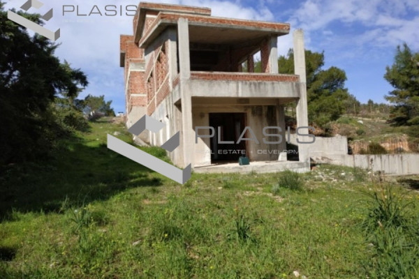 Pallini, Detached House For Sale, 451 sq.m., On a plot of 2800 sq.m., Status: Unfinished, Floor: Ground Floor, 4 Level(s), View: Mountain + Sea, Year of construction: 2006, Price Negotiable, Airy, Frontage, Bright, Stunning detached house on a 2800 sq.m. plot, built on 4 levels with the possibility of autonomy in 2 independent houses. Within the zone with a building permit, view of the entire basin, Price: €490,000. Plasis Constitution, Tel. Contact: +30 2103224225, email: