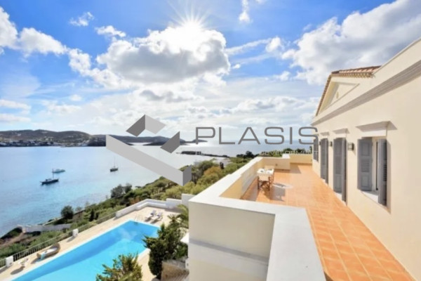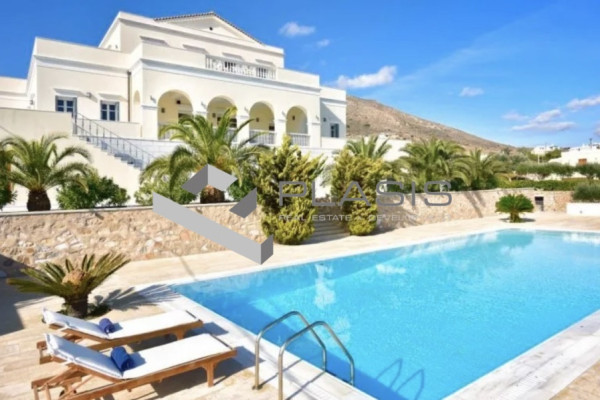 Syros-Ermoupoli, Phoinikas, Detached house For Sale, 600 sq.m., In Plot 6000 sq.m., Property Status: Very Good, Floor: Ground floor, 3 Level(s), 7 Bedrooms 2 Kitchen(s), 7 Bathroom(s), 1 WC, Heating: Autonomous - Petrol, View: Sea view, Building Year: 1990, Energy Certificate: C, 5 parking(s), Floor type: Marble + Tiles, Type of door frames: Aluminum, Security door, Security alarm, Storage room, Fireplace, Satellite Receiver, Cable TV, Internet Line, Electric Appliances, Playroom, Internal Staircase, Double Glazed Windows, Window Screens, Balcony Cover, Balconies, BBQ, Pets Allowed, For Investment, Furnished, Neoclassical, Luxury, Mansion, Airy, Roadside, Bright, AirConditioning, Solar water system, Boiler, Grass, Trees, Swimming pool, Back yard (Garden), Painted, Renovated, Distance from: Airport (m): 5000, Seaside (m): 50, City (m): 5000, Village (m): 1, Price: €3,900,000. Plasis Glyfada, Tel: +30 2109601909 +30 2109601609, email:
