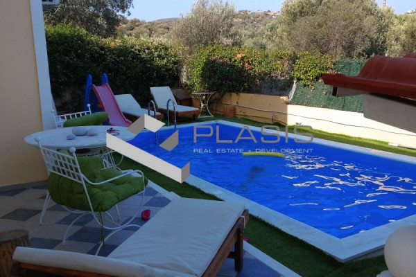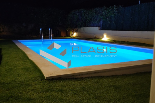 Koropi, Agia Marina, Detached House For Sale, 135 sq.m., On a plot of 410 sq.m., Condition: Amazing, Floor: Ground Floor, 1 Level(s), 3 Bedrooms (1 Master), 1 Kitchen(s), 1 Bathroom(s), living room with fireplace and direct access to landscaped garden with swimming pool, Heating: Autonomous, View: Mountain, Energy Certificate: C, 1 parking place/s, Floors: Tiles, Frames: Aluminum, Security Door, Alarm, Storage, Night current, Satellite Antenna, Internet, Electronic Devices, Double Glazing, Screens, Awnings, Verandas, BBQ, Pets Allowed, No Shared Rooms, Luxurious, Airy, Front, Bright, Corner, Air Conditioning, Solar, Boiler, Lawn, Self Watering, Pool, Garden, Painted, Renovated, Orientation: east, Near: 10` from Airport - 5` from sea, Distance from: Airport(m): 15000, Sea(m): 3000, Price: €560,000. Plasis Glyfada, Tel. Contact: +30 2109601909 +30 2109601609, email: