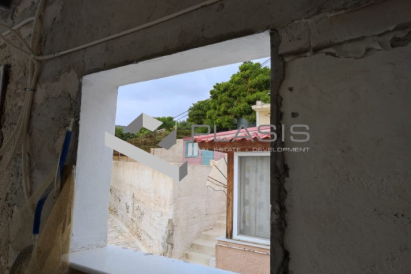 Syros-Ermoupoli, Vrontado, Detached House For Sale, 80 sq.m., On a plot of 140.19 sq.m., Condition: Very good, Floor: Ground Floor, 2 Level(s), 1 Bedroom(s), 1 Kitchen(s), 1 Bathroom(s), 2 independent levels, Heating: Autonomous - Electricity, View: Sea, Energy Certificate: D, Floors: Tiles, Frames: Aluminum, Storage, Cable TV, Internet, Electrical Appliances, Double Glazing, Screens, Verandas, Pets Allowed, No Shared Uses, Investment, Furnished, Airy, Front, Interior, Bright, Air Conditioning, Solar, Boiler, Garden, Painted, For Students, semi-basement - ground floor 38.56sqm entering the courtyard on the left., semi-basement - ground floor 13.19sqm (storage area) entering the courtyard on the right., Unfinished building on the first floor with unobstructed sea view 26.26sqm., The detached house has 2 levels. The lower level is a fully furnished 1 bedroom apartment. There is a plan to create an internal staircase., The A floor is an unfinished building, with a view of the sea and a side terrace. It has independent external access but can also be connected to the ground floor., The building of the first floor is built in 2023. There are ready-to-install frames., There is a valid building permit available., The 13 sqm warehouse has water and electricity supply and can be used as an independent studio., Orientation: South, Close to: Parking - MMM, Distance from: Airport(m): 4000, Sea(m): 1500, City(m): 1500, Village(m): 5000, Price: €95,000. Plasis Glyfada, Tel. Contact: +30 2109601909 +30 2109601609, email: