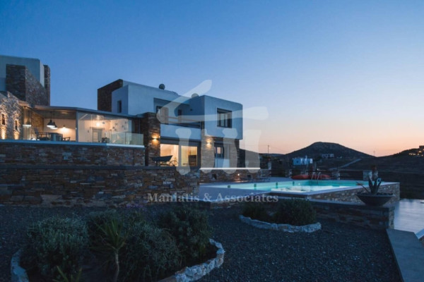 Syros-Ermoupoli, Phoinikas, Detached house For Sale, 210 sq.m., In Plot 1000 sq.m., Property Status: Very Good, Floor: Ground floor, 1 Level(s), 3 Bedrooms (1 Master), 2 Kitchen(s), 3 Bathroom(s), 1 WC, Heating: Autonomous - Petrol, View: Sea view, Building Year: 1995, Energy Certificate: Under publication, 4 parking(s), Floor type: Tiles, Type of door frames: Wooden, Storage room, Fireplace, Cable TV, Internet Line, Electric Appliances, Double Glazed Windows, Window Screens, Balcony Cover, Balconies, BBQ, Pets Allowed, No shared expenses, For Investment, Furnished, Stonehouse, Luxury, Mansion, Airy, Roadside, Bright, AirConditioning, Solar water system, Boiler, Trees, Swimming pool, Back yard (Garden), Painted, Distance from: Airport (m): 4500, Seaside (m): 1500, City (m): 5000, Village (m): 1, Price: €1,200,000. Plasis Glyfada, Tel: +30 2109601909 +30 2109601609, email:
