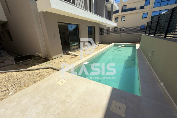 Maisonette For Sale, floor: Ground floor, in the area: Alimos - Kefallinion. The area of the property is 154.70 sq.m. It consists of:, 3 bedrooms (1 master), 2 bathroom/s, 1 wc, 1 kitchen/s, 1 living room/s, while it has 1 parking spaces (1 in open space). It was built in 2024. The heating of the property is autonomous, while also available underfloor heating, heating per level, air conditioning, solar, it has thermal break frames with double glazing, energy certificate: A+ and the floors are: Wood. Balconies. Its condition is: Newly built, Amazing, located near Transportation, Park, Sea, School, 12000 Meters from city, 700 Meters from beach, 25000 Meters from airport, has a good view. The property is Painted, Frontage, Bright, Airy, Handicapped Access/Ramp, Luxurious, suitable for Business, Investment and also has the following features and benefits: Screens, Lift, Storage, Internal staircase, Swimming Pool, Garden, Security Door, CCTV, Alarm, Internet, Satellite, Night Power, Automatic Irrigation, Lawn, Trees, Pets Allowed, Photovoltaic Panels. PROPERTY DESCRIPTION: Excellent maisonette, two-level frontage 154 sq m ground floor - semi-basement floor, with exclusive use of 100 sq m garden and 25.90 sq m swimming pool, 3 bedrooms, 1 parking space, basement storage, ROOM LAYOUT: The ground floor is 80 sq m and has living room, kitchen, 2 bedrooms and bathroom. The basement consists of 1 master bathroom, Playroom, movie room and wc. ENERGY BUILDING: Energy class A+, external thermal facade 10 cm. aluminum energy frames with thermal break, securit glazing, HEATING & AIR CONDITIONING: Underfloor heating with a heat pump and hot water for use through a heat pump, air conditioning cooling - heating VRV, EQUIPMENT: Alarm pre-installation, photovoltaics for electricity production energy, fireproof security doors fireproof security doors, fire alarm system throughout the apartment, anti-seismic construction, MATERIALS: Oak floors throughout the house, hanging basins, all materials are of excellent quality in modern designs, DESIGN: minimal design, excellent architecture, large openings, ergonomic layout, LOCATION: Excellent location, green environment, quiet spot. Price: €984,000. Plasis Real Estate Glyfada, Contact Phone: 2109601909, email: