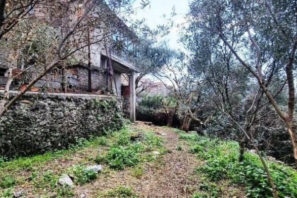 The properties offer beautiful views of the valley, with a partial glimpse of the sea. The first house is 80.13 sq.m. over two floors, set on a 98 sq.m. plot, while the second house, larger at 214.71 sq.m., sits on a sloping 2,549 sq.m. plot with 60 olive trees—enough to produce your own olive oil each year! Though the houses require complete restoration, they hold great potential as two lovely, separate homes, each offering at least two bedrooms.
