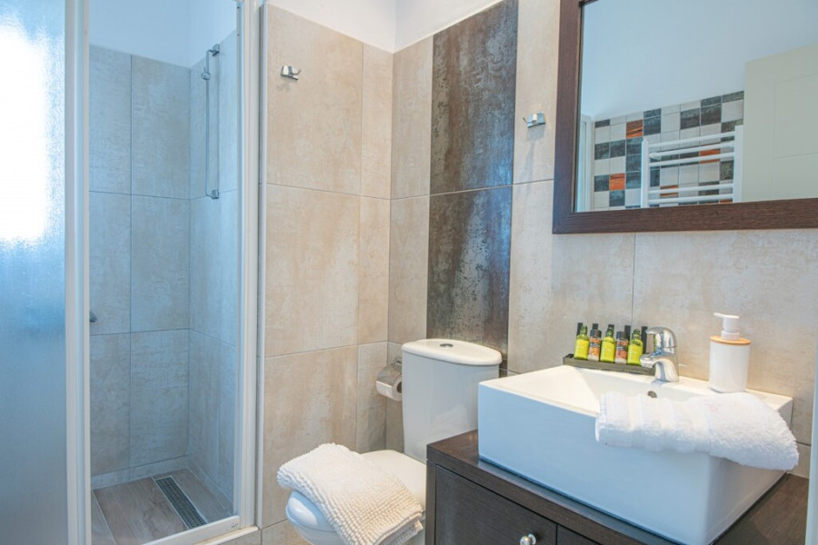 It has a total living space of 200 m² sitting on a 4000 m² plot, developed over 2 levels. It consists of 4 bedrooms and 4 bathrooms + a WC. There is an open-plan kitchen and a dining room, while from the living room, the large windows open onto a huge paved terrace of 360m2 with a stunning sea view leading to the swimming pool . There are also four bedrooms, four bathrooms, a wc and two dressing rooms, ensuring everyday comfort. It is designed for year-round living as it has A/C units providing heating and cooling throughout the year. Outside, the property features a fenced garden and a wooden pergola covered dining space. Additionally, there is a swimming pool and a sunbathing area where you can relax and enjoy amazing sea and sunset views. HIGHLIGHTS • Living Space: 200 m2 • Land Area: 4000 m2 • 4 Bedrooms & 4 Bathrooms + WC • Sea & Sunset Views • Air-conditioning • Garden • Solar Panel Mochlos Mochlos is a small picturesque fishing village located In the gulf of Mirabello in Eastern Crete, easily within reach of Agios Nikolaos, Ierapetra and Sitia (all an easy one hour drive), the possibilities for exploration and sightseeing are numerous. This tranquil village is an off-the-radar gem along Crete’s northern shore. A great place to relax, soak up the peacefulness of the place and enjoy a leisurely meal in one of the excellent waterfront cafes and tavernas.