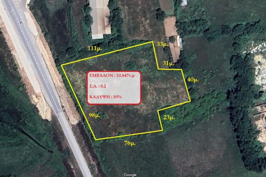 On the National Road of Ioannina is for sale a buildable plot of land with a total area of 10,847 square meters.