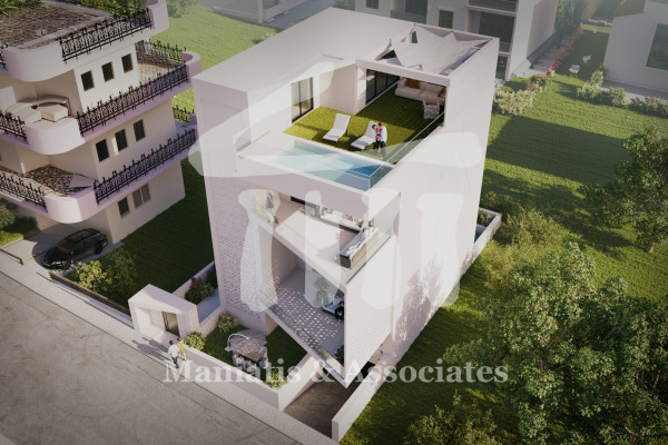 For Sale, South Suburbs - Alimos: Maisonette 173 sq.m., basement and ground floor, under construction. It consists of a master bedroom with its own bathroom, kitchen - living room, in a spacious and open space with a large living-dining room. It is a newly built and luxurious property, fully adapted to modern needs, high aesthetics, with swimming pool and garden, with a storage room of 18.36 sq.m. and underground parking space. It is located in an excellent location, in a quiet neighborhood, a few meters from the sea.