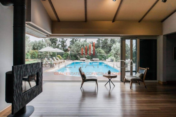 MAROUSI, Orio Vrilission, Newly built 3-level Villa of Excellent Aesthetics, 1000 sq.m., airy, consisting of 3 living rooms, 6 bedrooms of which 2 are Master, 4 bathrooms and 2 WC. Located on a plot of 5,500 sq.m., it has Energy Class A+, autonomous natural gas heating on all levels and underfloor heating.